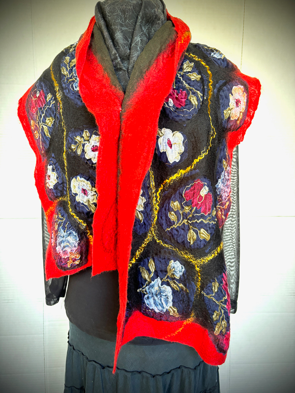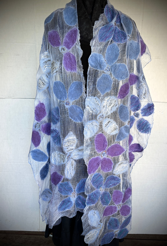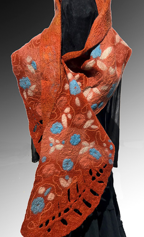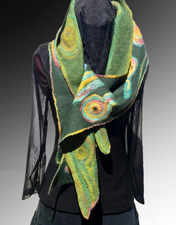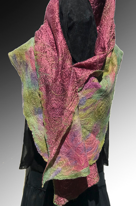Suzanne is a fiber artist employing the techniques of Nuno Felting, Wet Felting and Shibori to her Wearable Art expressions.  She finds great inspiration from natures’ kaleidoscope of colors, and design patterns.  You will find her felting to be unqiue, both elegant or rustic, gender neutral or not.