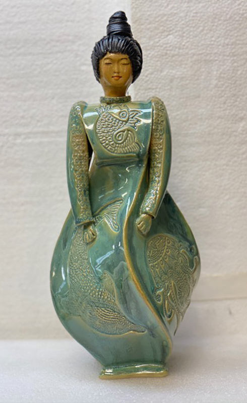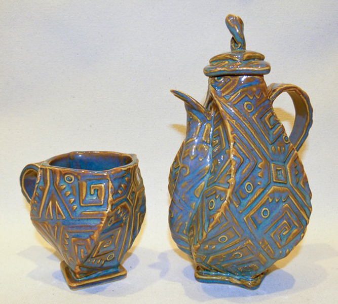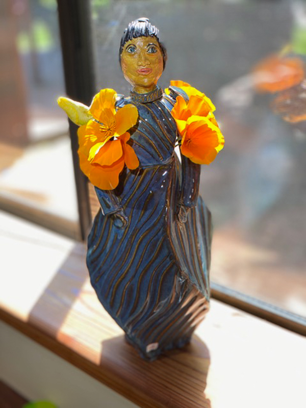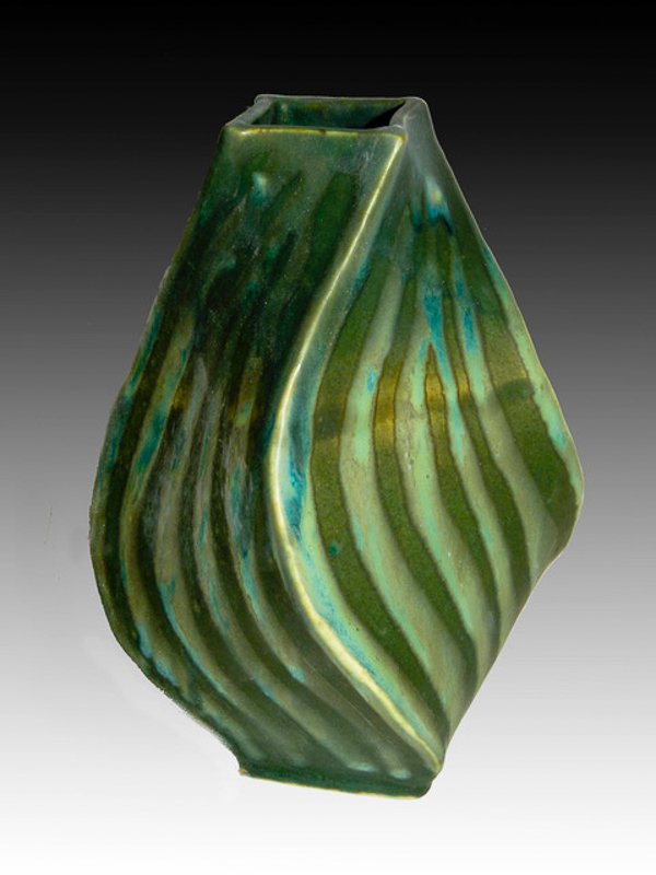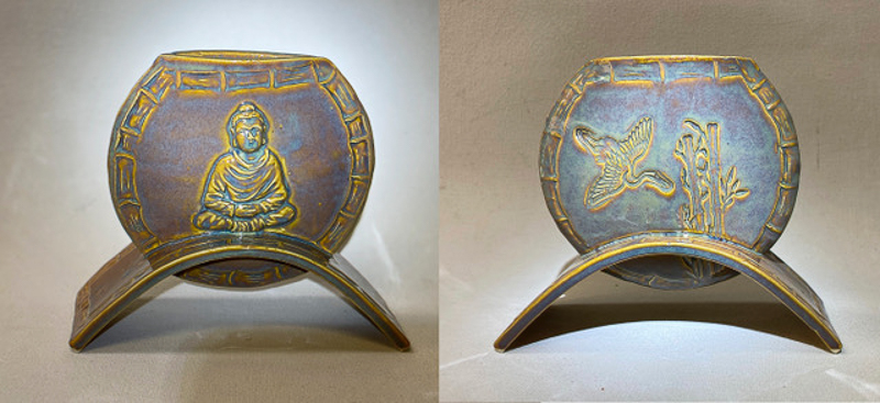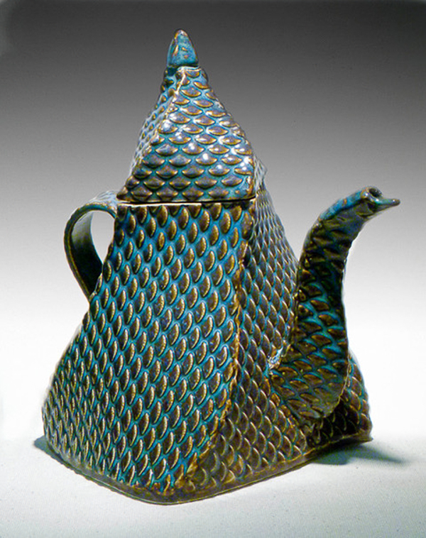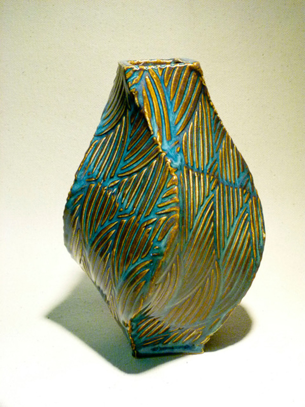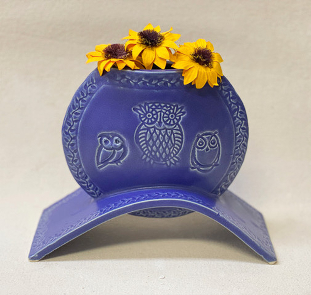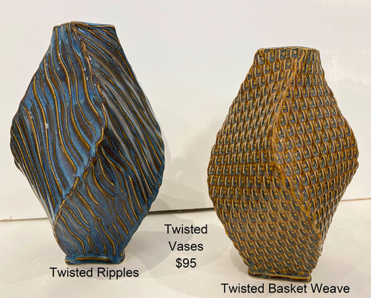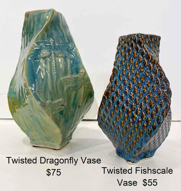 Twisting and curving the clay is another way to show how flexible and fluid this medium is, and how you’re only limited by your imagination. When my husband saw me making a twisted vase he commented that it could be a curvaceous woman, so I added the upper half and came out with some nice figurines that are also vases. When he saw me making my Suspended Ikebanu Vase he said he liked the curve and wondered how it would look if it were upside down. That’s how my Asian Rocker Teapot came to be.